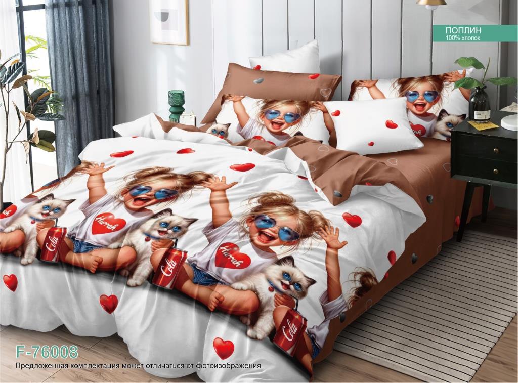 Комплект постельного белья 1.5 сп ПОПЛИН "76008 ЕМ" (нав. 70х70 или 50х70)