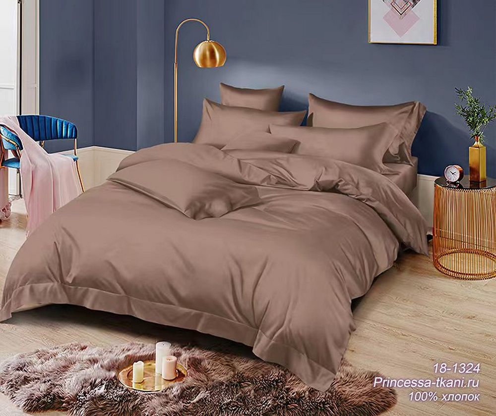 Комплект постельного белья Евро с простыней на рез.160Х200 ПОПЛИН "Шоколад 18-1324 ЕМ" (нав. 70х70 или 50х70)