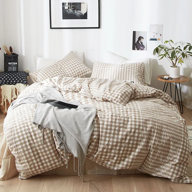 КПБ 2 сп с простыней на рез. 140х200 ВАРЕНЫЙ ХЛОПОК "Клетка бежевая"