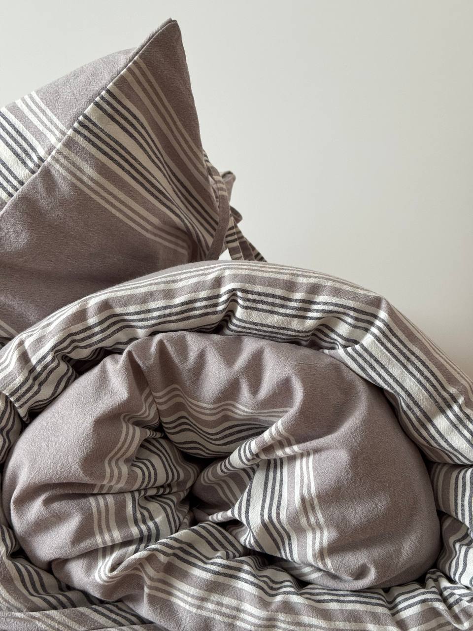 КПБ Дуэт с простыней на рез. 180х200 ВАРЕНЫЙ ХЛОПОК "Широкая серая полоса"